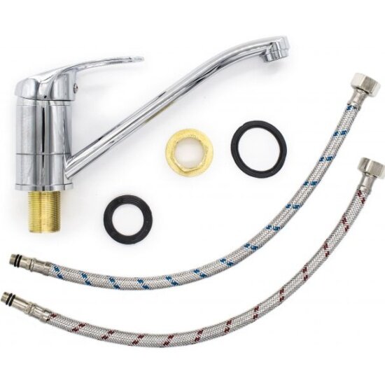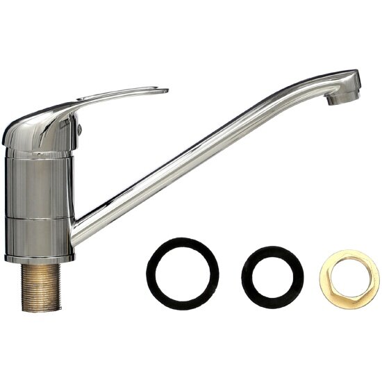 Смеситель Ремоколор латунный однорычажный для кухни, гайка, керам картридж 40мм, гусак 25см: сравнение цен, характеристики, фото, актуальное наличие и цены.