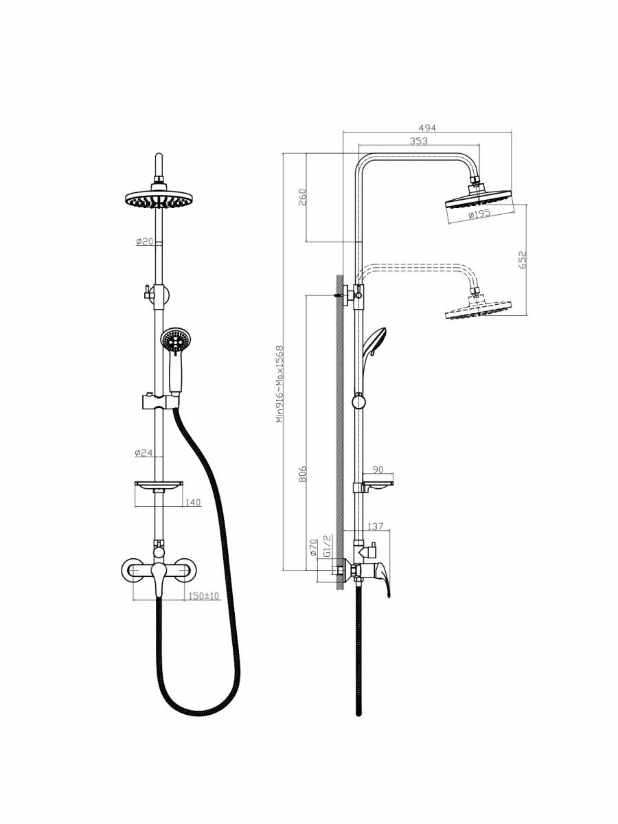 Смеситель Rossinka A35-45 для душа с регулируемой высотой штанги и лейкой «Тропический дождь»