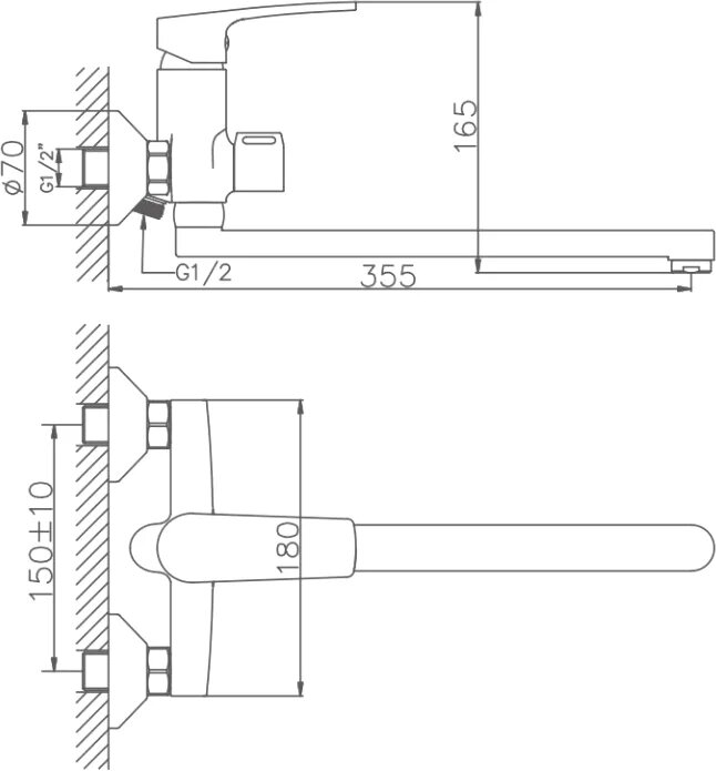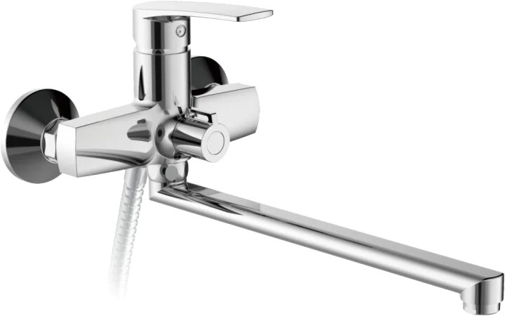 Смеситель с длинным изливом для ванны Haiba HB22587 с душевым гарнитуром, поворотный, латунный, хром, глянцевый, смеситель для ванны с душем, рычажный, с настенным держателем