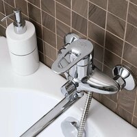 Купить Смеситель с длинным изливом для ванны РМС SL52-006E-3 с душевым гарнитуром, поворотный, металлический, хром, глянцевый, смеситель для ванны с душем, рычажный, с настенным держателем с доставкой по всей России. Смеситель с длинным изливом для ванны РМС SL52-006E-3 с душевым гарнитуром, поворотный, металлический, хром, глянцевый, смеситель для ванны с душем, рычажный, с настенным держателем: сравнение цен, характеристики, фото, актуальное наличие и цены.