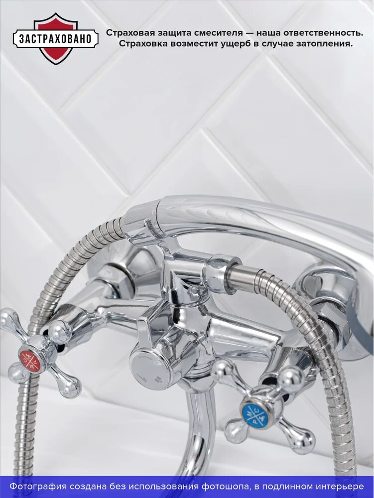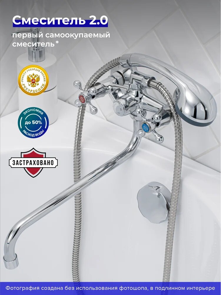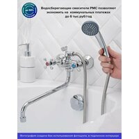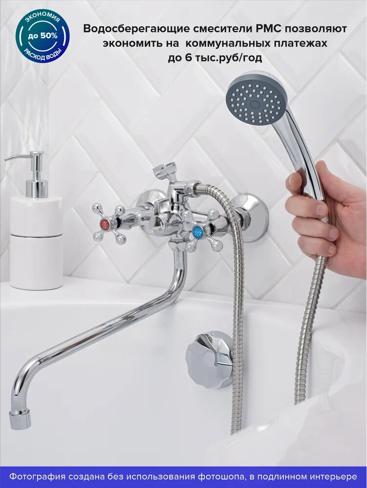 Смеситель с длинным изливом для ванны РМС SL71 SL71-143P с душевым гарнитуром, поворотный, металлический, хром, глянцевый, смеситель для ванны с душем, вентильный