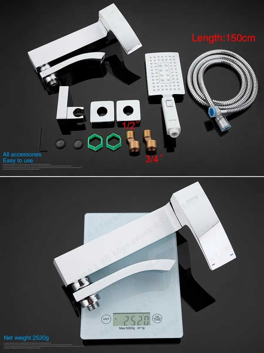 | Комплектация | держатель лейки, излив для набора воды, лейка, набор эксцентриков, ручной душ, смеситель, шланг, эксцентрик |