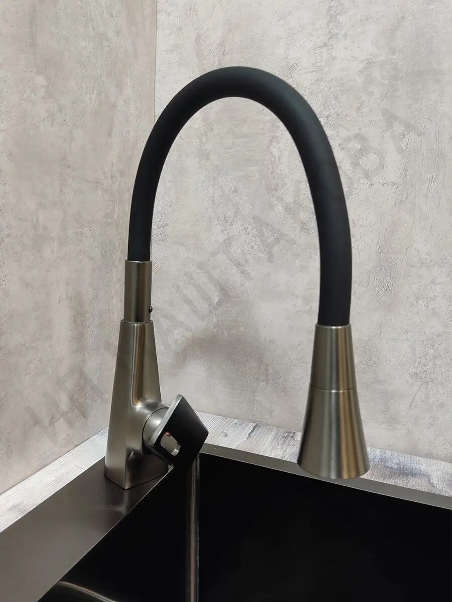 Смеситель для кухни с гибким изливом и подключением фильтра R558Y цвет темно-серый/черный
