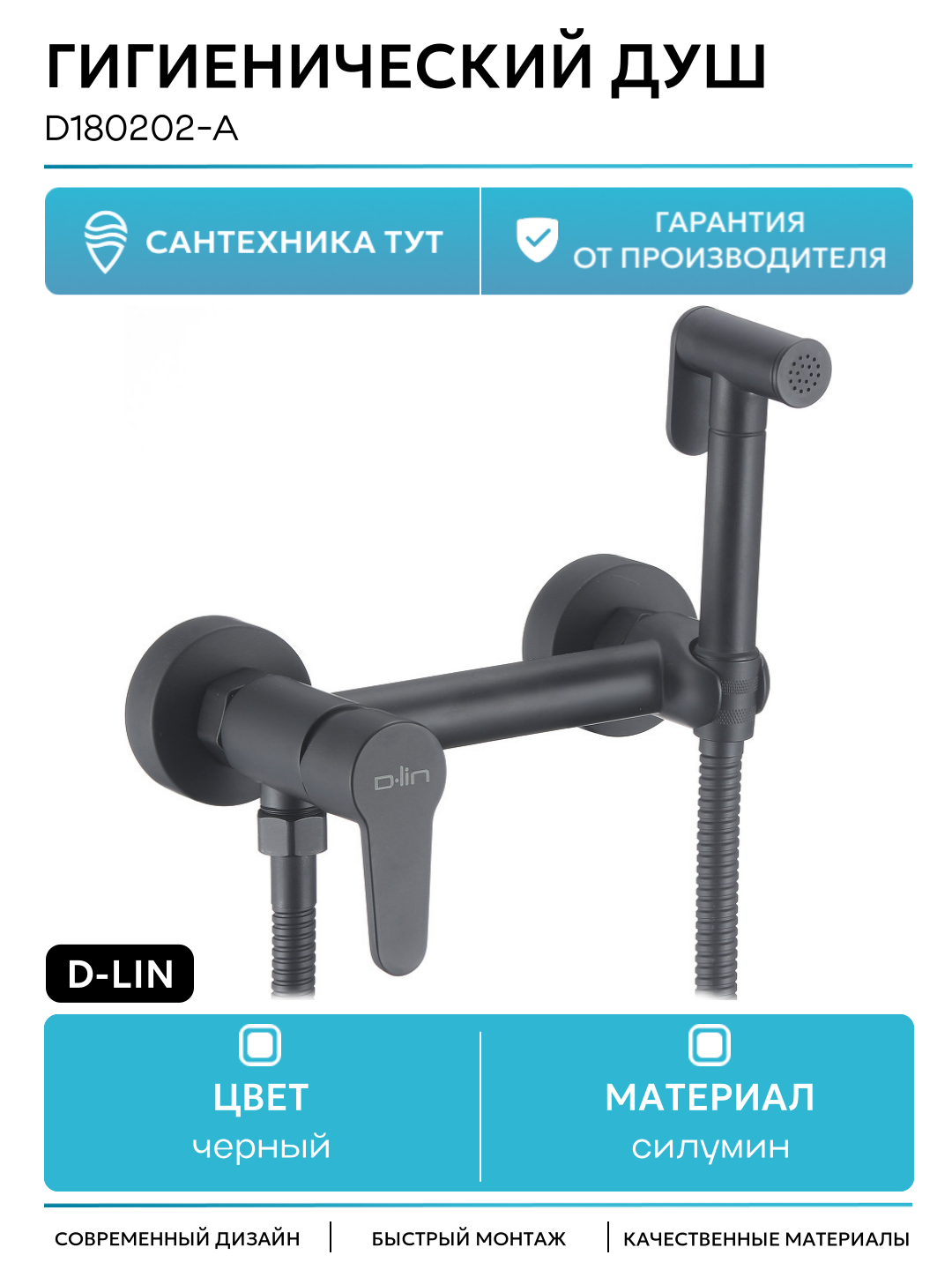 Гигиенический душ D-Lin D180202-A Черный матовый силумин на стену со смесителем: сравнение цен, характеристики, фото, актуальное наличие и цены.