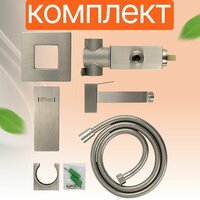 Купить Смеситель с квадратной гигиенической лейкой встраеваемый, из нержавеющей стали, квадратный корпус, цвет сатин. с доставкой по всей России.
