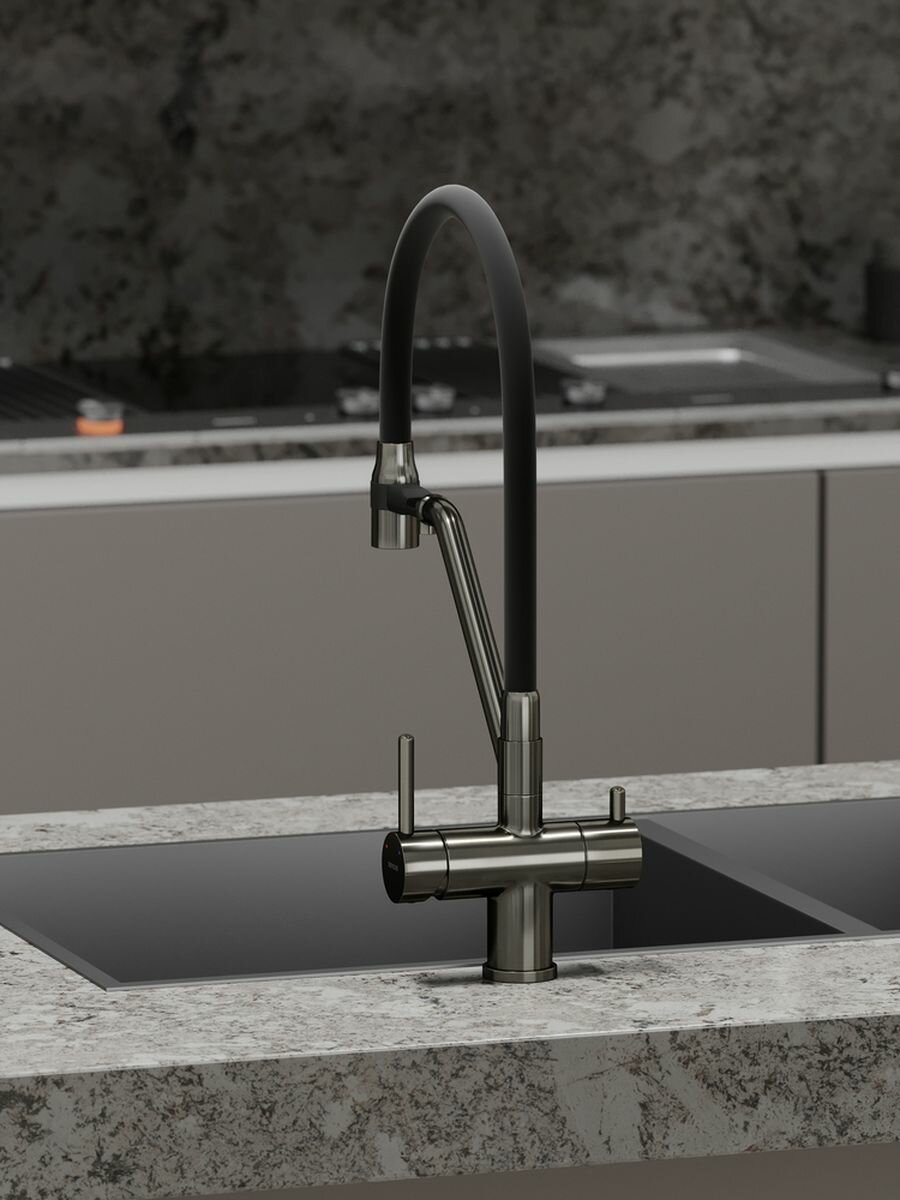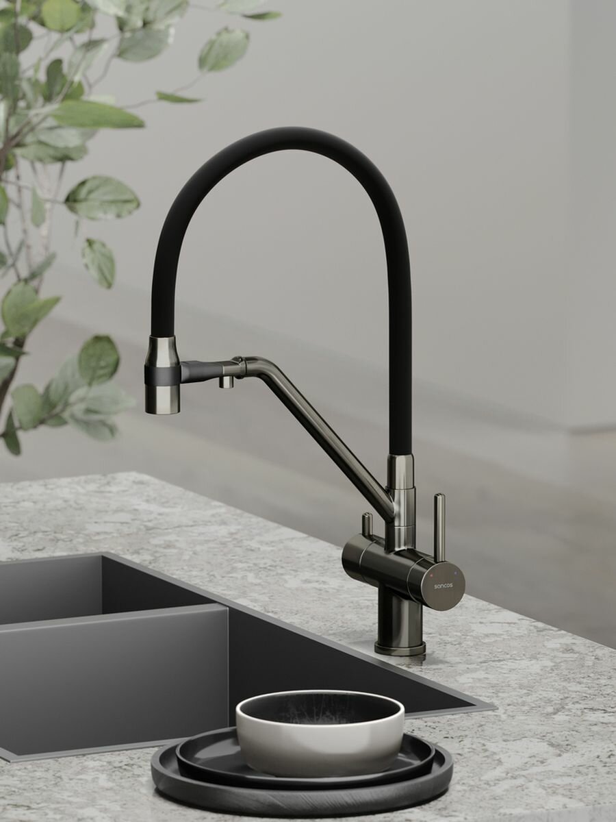 Купить Смеситель SANCOS Dora SC4003GG для кухни, гибким изливом, с подключением фильтра, вороненая сталь с доставкой по всей России.