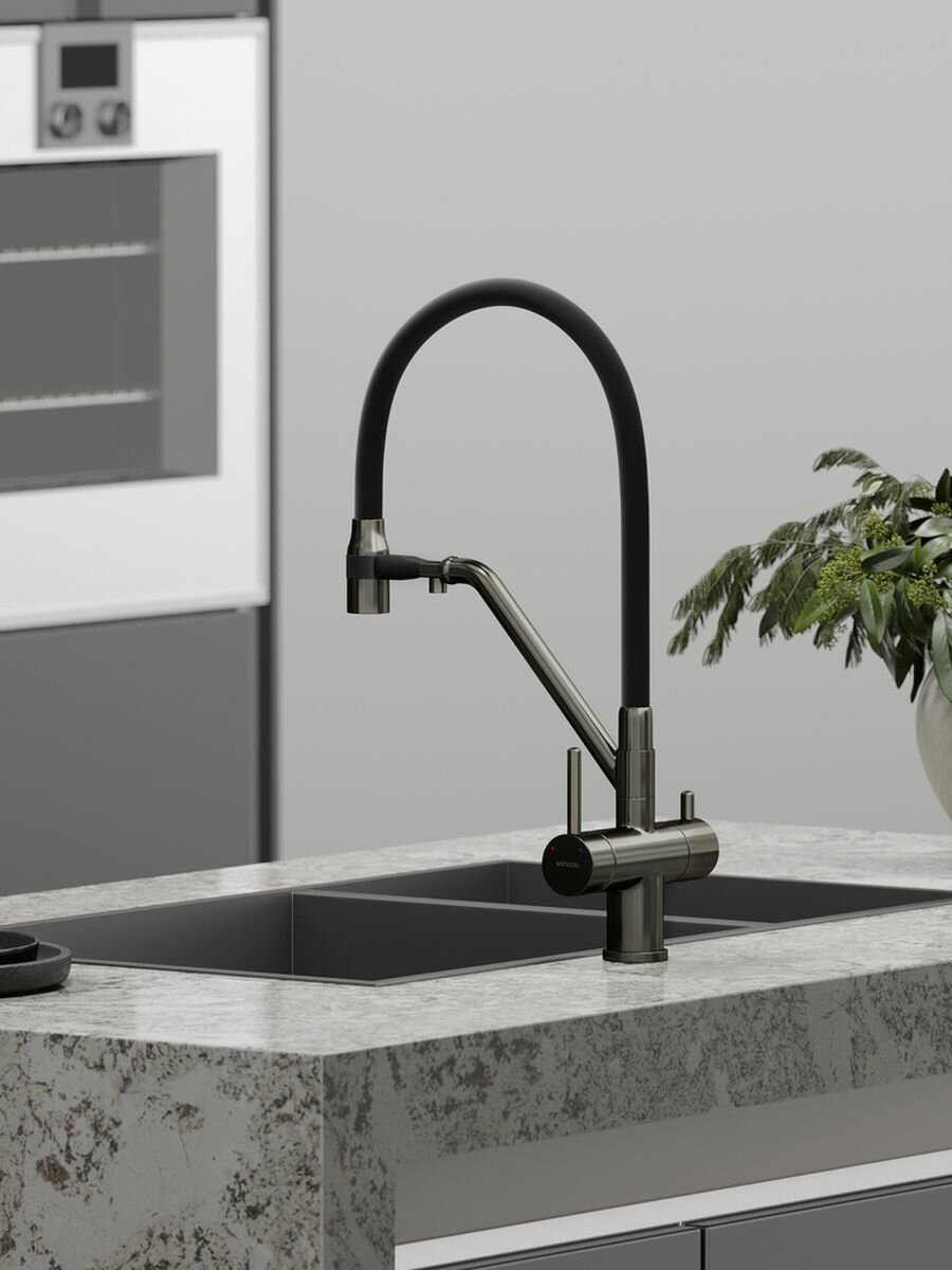 Смеситель SANCOS Dora SC4003GG для кухни, гибким изливом, с подключением фильтра, вороненая сталь: сравнение цен, характеристики, фото, актуальное наличие и цены.