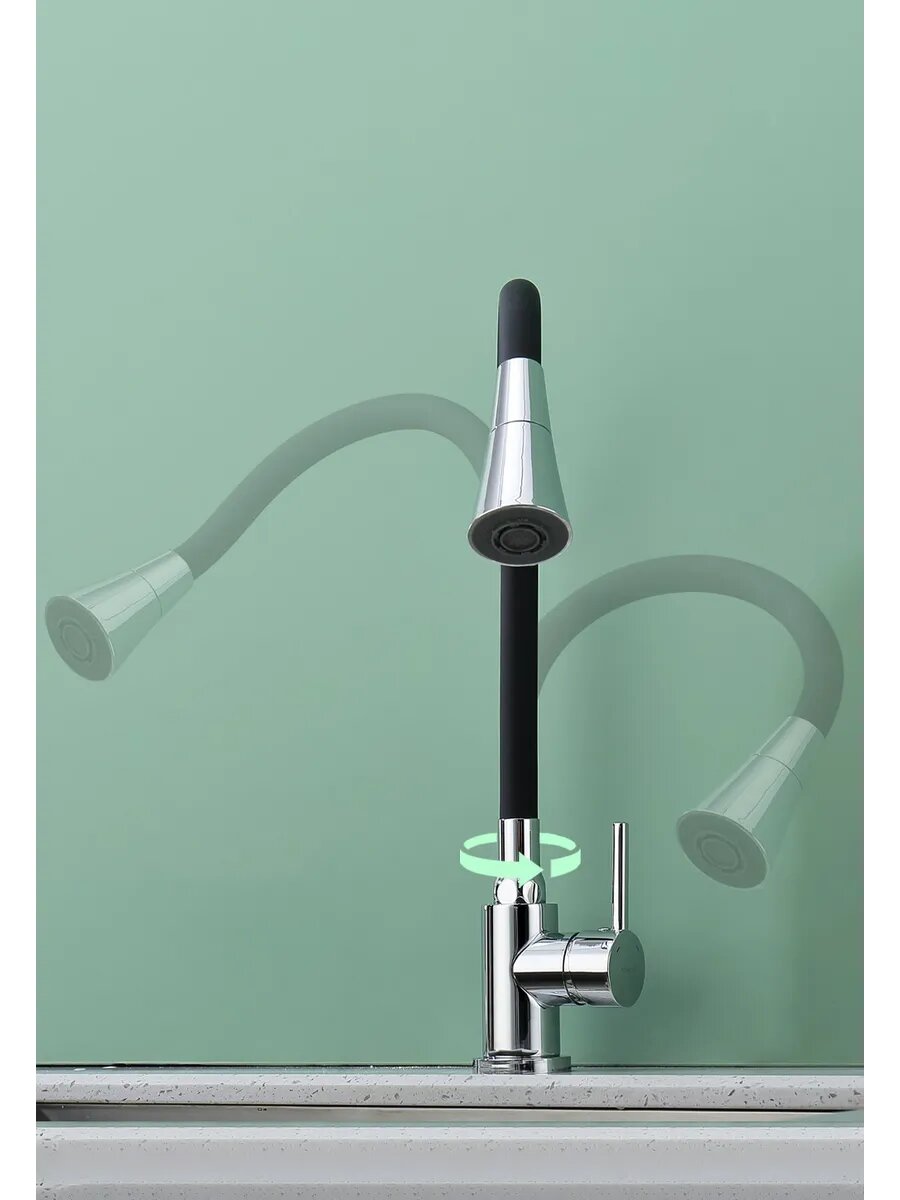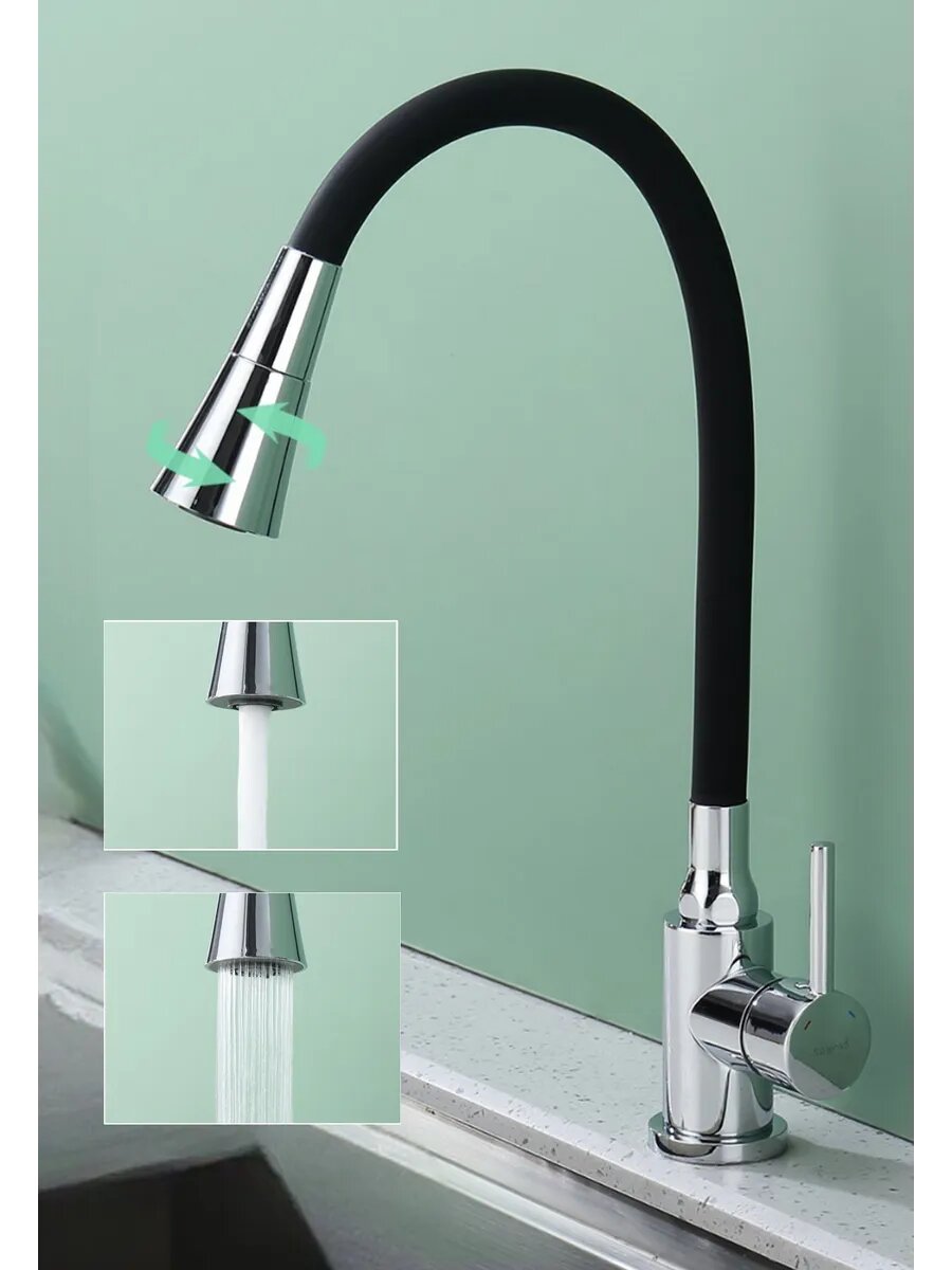 Стильный смеситель для кухни Splenka S201.4306 выполнен из нержавеющей стали в цвете хром. Смеситель для кухни с гибким изливом отлично подходит для использования на кухне, у него 2 режима — обычный и душевой, что очень удобно для мытья посуды. Он оснащен аэратором и однорычажной системой управления подачей воды. В данной модели используется керамический картридж диаметром 35 мм. В комплекте со смесителем есть все необходимое для самостоятельной установки — гибкая подводка длиной 50 см и комплект крепежа.