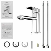 | Комплектация | Смеситель, набор крепежа для установки смесителя, 2 гибких подводки воды |