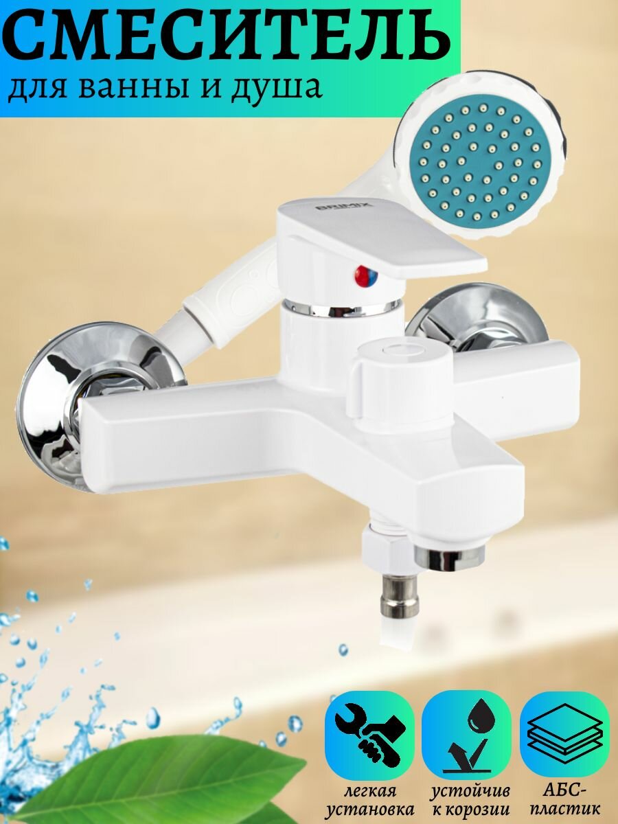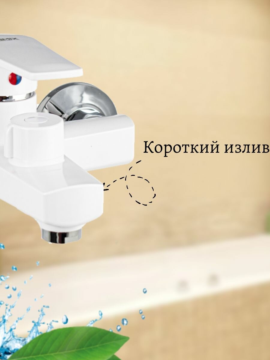 Смеситель в ванную, короткий излив, шаровый, из высокопрочного пластика АБС, белый: сравнение цен, характеристики, фото, актуальное наличие и цены.
