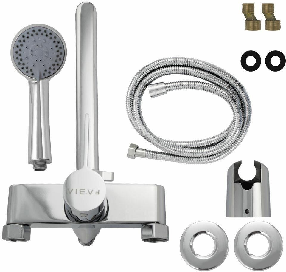 Купить Смеситель в ванную с длинным, плоским изливом, шаровый, с дивертором м/к на корпусе с доставкой по всей России.