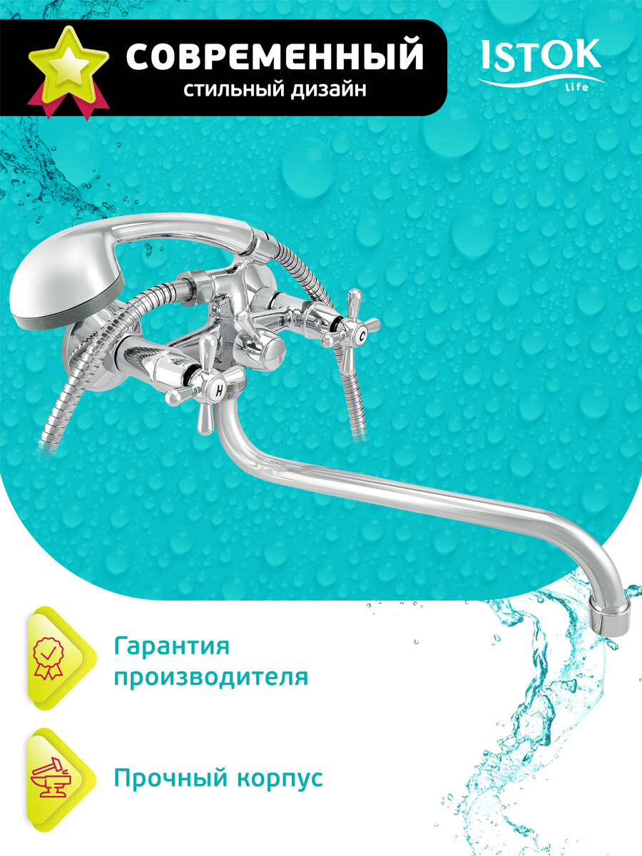 Смеситель ванно-душевой латунный двуручный «Istok», S-излив 350 мм: сравнение цен, характеристики, фото, актуальное наличие и цены.