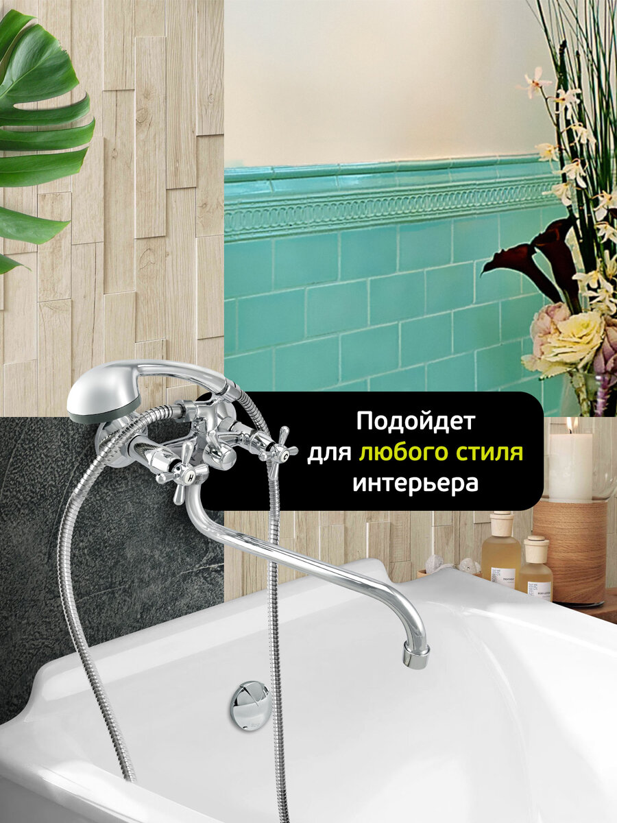 Смеситель латунный универсальный для ванны с плоским поворотным изливом 35 см. и лейкой Lemark Basis LM3617C хрoм