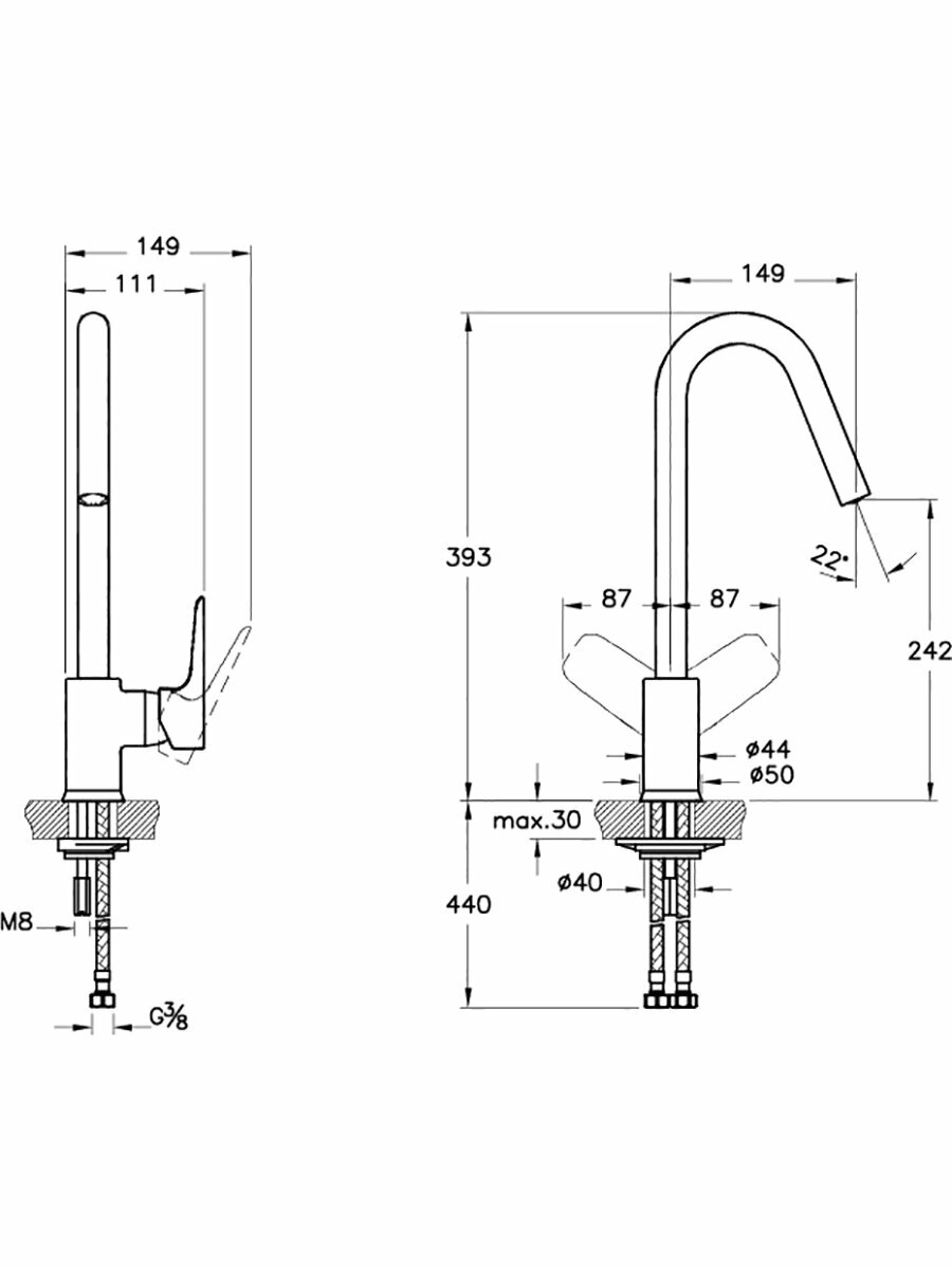 | Длина излива | 149 мм |