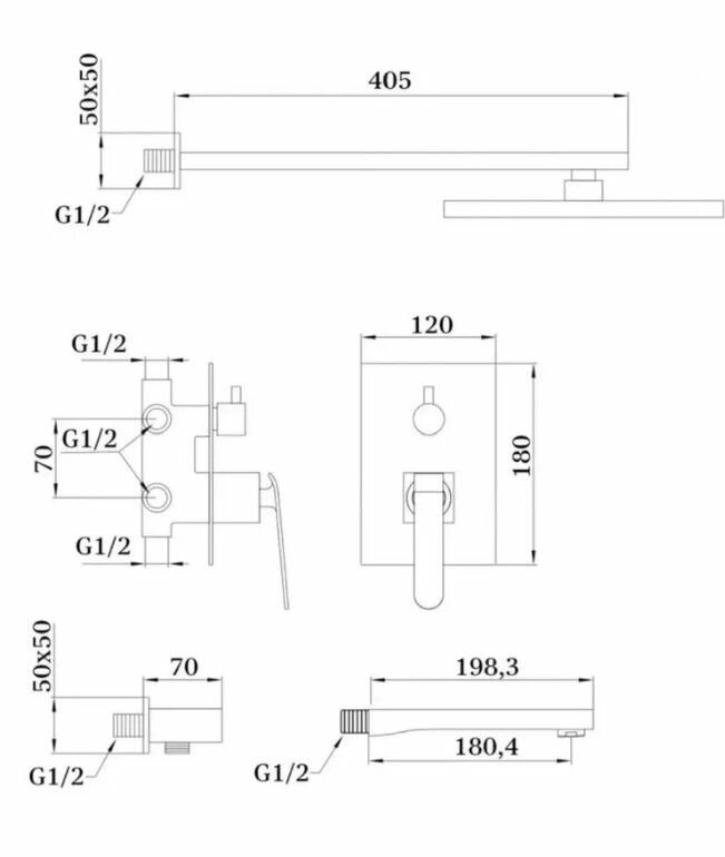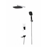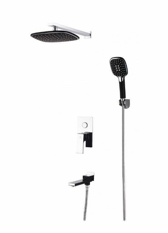 | Комплектация | Держатель верхнего душа, лейка «тропический дождь», душевая лейка 3-режимная, настенное крепление для лейки, шланг 1.5 м (нерж. сталь), декоративная накладка для корпуса смесителя, комплект прокладок |
