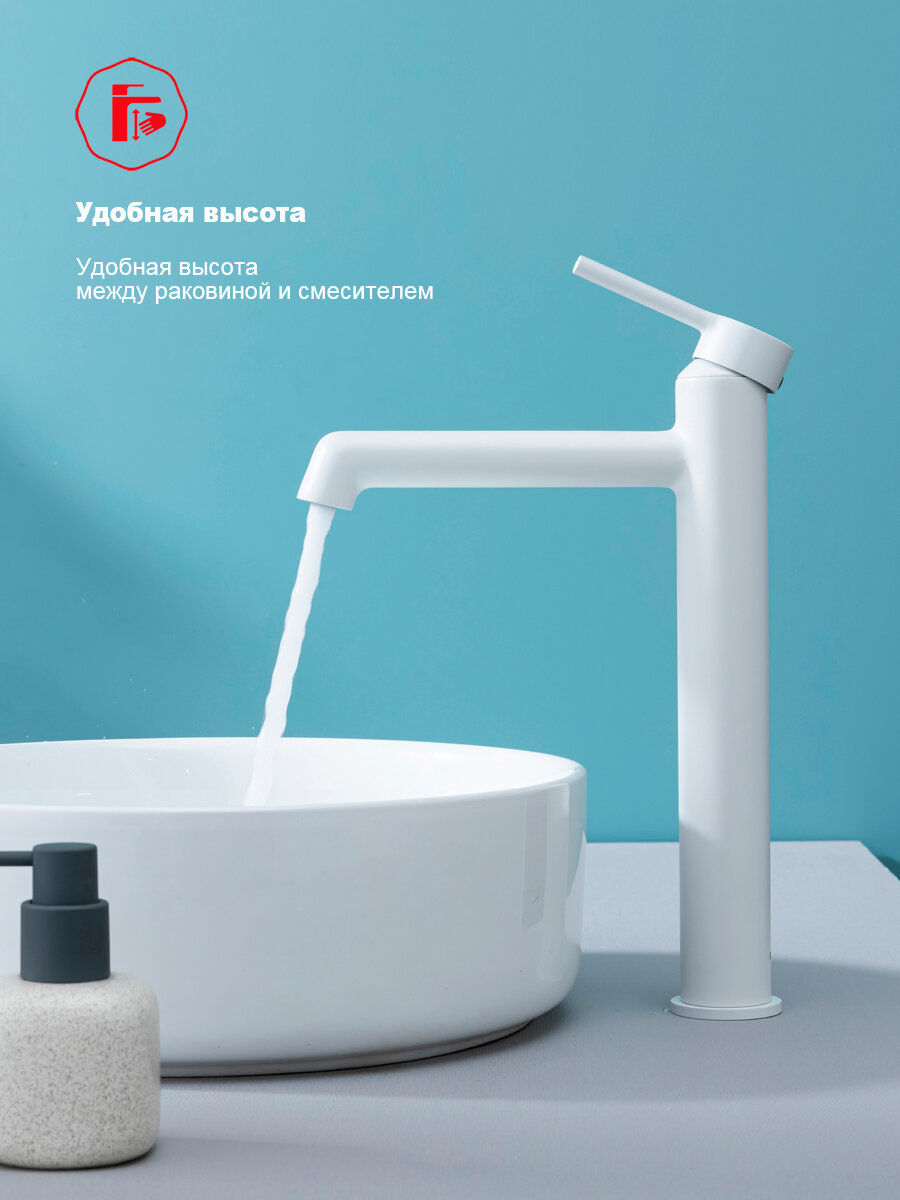 Смеситель высокий для раковины с фиксированным изливом Raglo R20.15.08 латунь, белый: сравнение цен, характеристики, фото, актуальное наличие и цены.