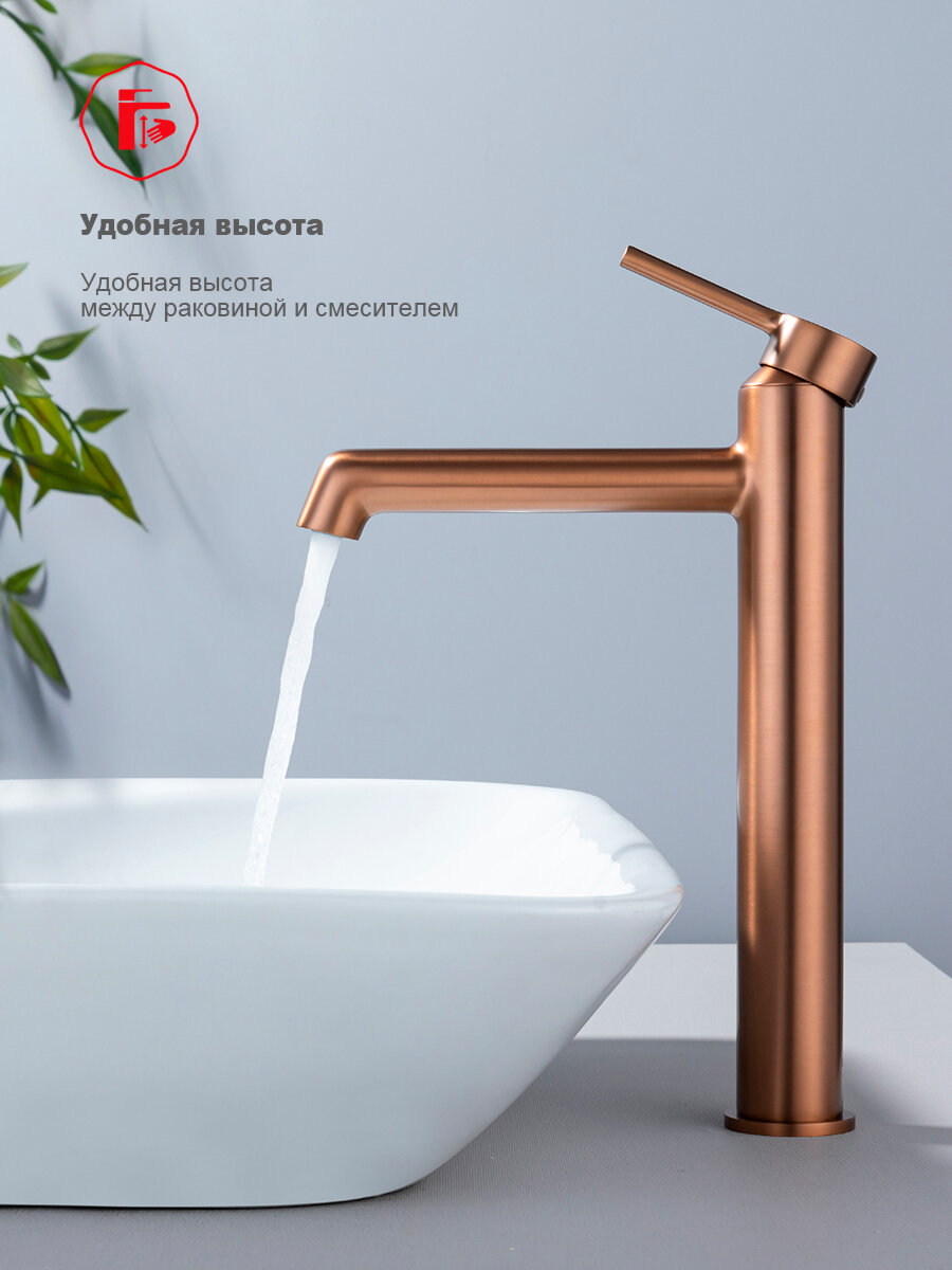Смеситель высокий для раковины с фиксированным изливом Raglo R20.15.33 латунь, матовая медь: сравнение цен, характеристики, фото, актуальное наличие и цены.