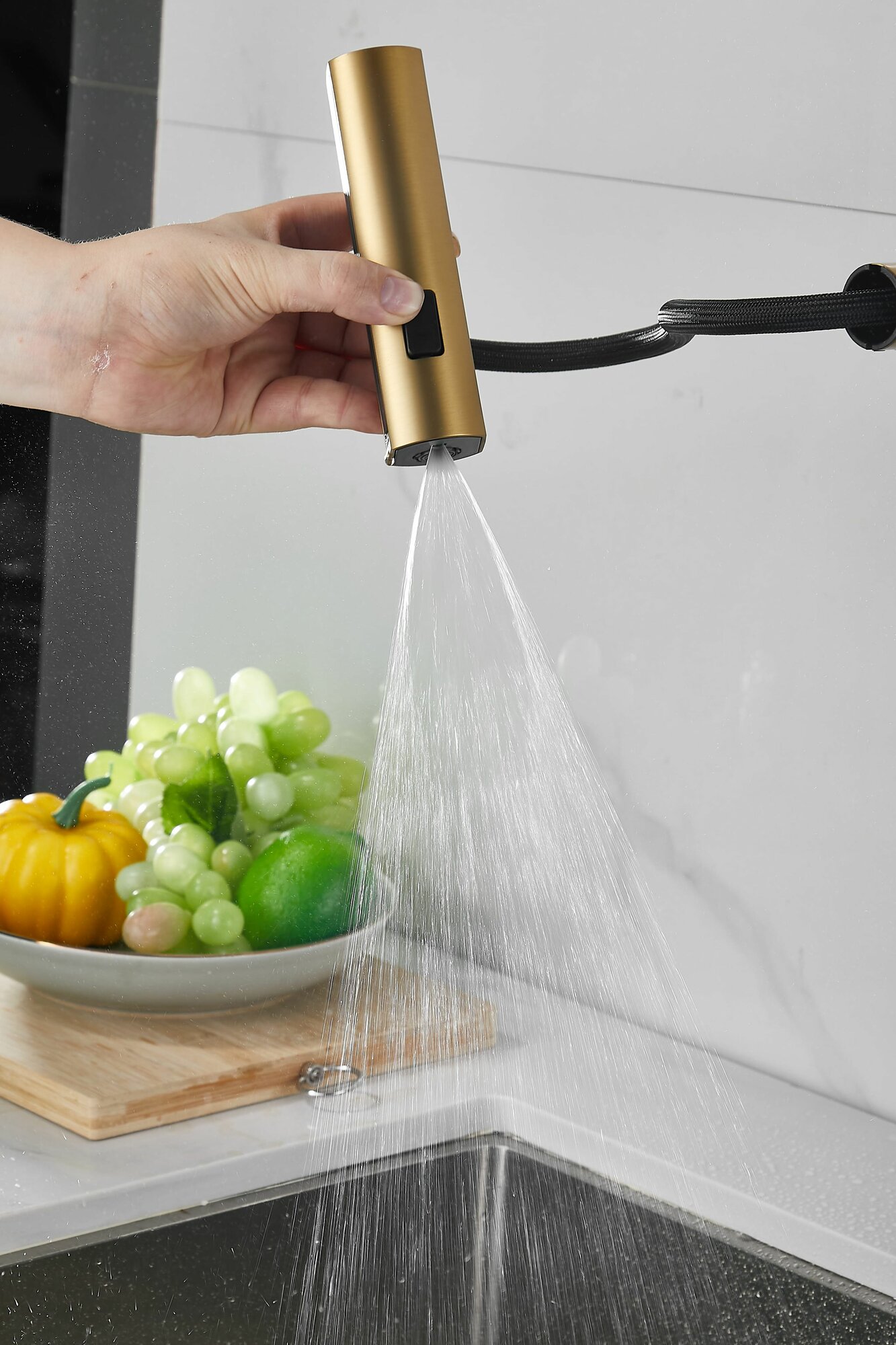 Смеситель золотой для кухни с 3х-режимной выдвижной лейкой, кран из нержавеющей стали на мойку BELZ B74811-5