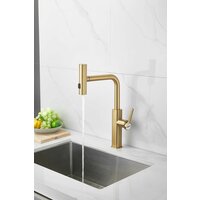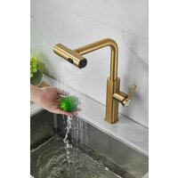 Купить Смеситель золотой для кухни с 3х-режимной выдвижной лейкой, кран из нержавеющей стали на мойку BELZ B74811-5 с доставкой по всей России.