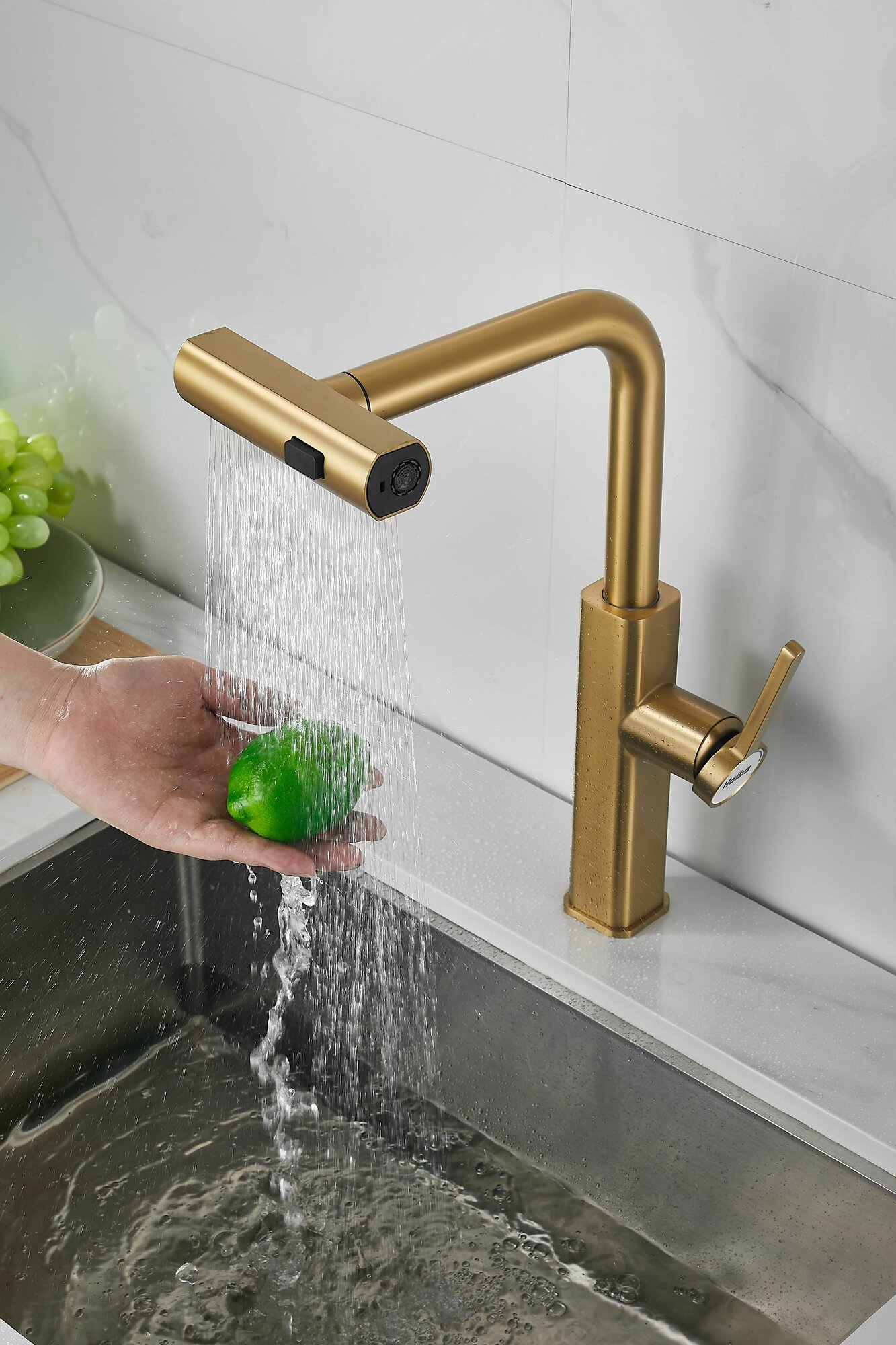 Смеситель золотой для кухни с 3х-режимной выдвижной лейкой, кран из нержавеющей стали на мойку BELZ B74811-5: сравнение цен, характеристики, фото, актуальное наличие и цены.