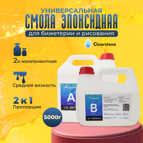 Смола эпоксидная для творчества, бижутерии (5кг) (Ювилирная, средняя вязкость), универсальная CLEARSTONE UNI: сравнение цен, характеристики, фото, актуальное наличие и цены.
