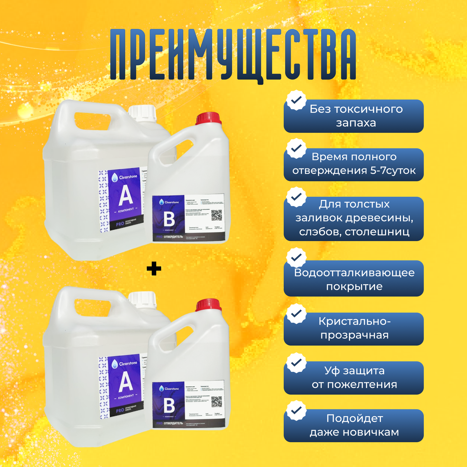Смола эпоксидная для заливки столешниц, рек, слэбов до 6см (10кг) жидкая Clearstone PRO: сравнение цен, характеристики, фото, актуальное наличие и цены.
