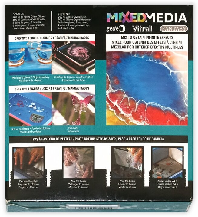 Используется для создания форм, включений, многослойных покрытий. Двухкомпонентная эпоксидная смола: смола и отвердитель. Прозрачная и прочная, идеально имитирует стекло.
