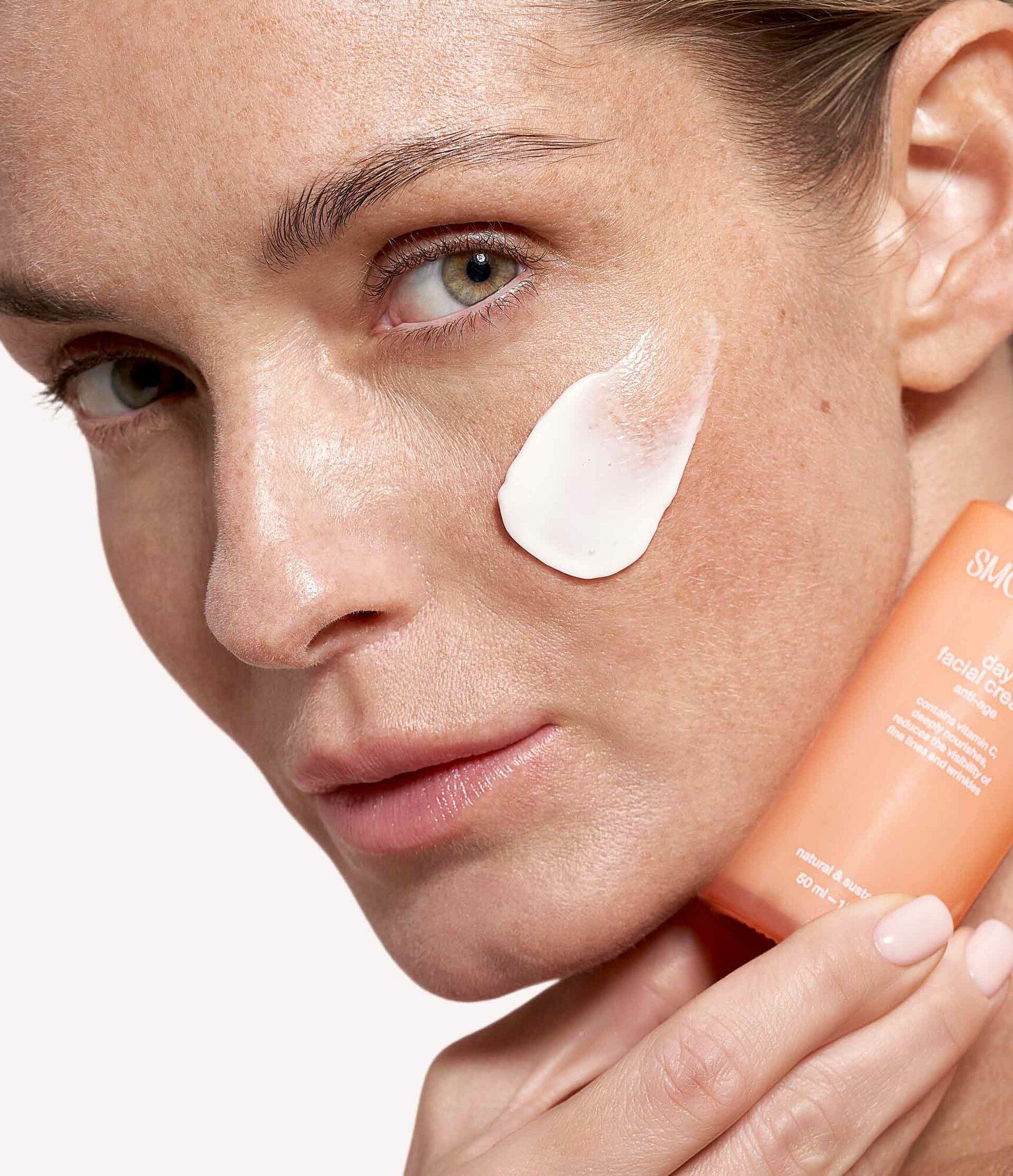 Для комплексного результата рекомендуется наносить под крем сыворотки или гидролаты SmoRodina по типу кожи. Результат от крема накопительный.