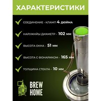 Смотровое окно - приварное окно для наблюдения за процессом или засыпки сырья и заливки воды. Смотровое окно изготовлено из нержавеющей стали и толстого жаропрочного стекла со специальными уплотнительными прокладками. Это позволяет окну выдерживать не только высокую температуру, но и контакт с кислотами и щелочами, которые содержаться в продуктах переработки. Окно оснащено фонариком в нержавеющем корпусе. Как правило в рабочей ёмкости при перемешивании продукта темно. Фонарик позволяет подсветить и увидеть более детальную картину. Он прост в эксплуатации и крепится к окну на резьбе. Это позволяет установить или снять его в любой момент. Фонарик вкручивается в верхнюю часть окна, которая находится над стеклом герметична.