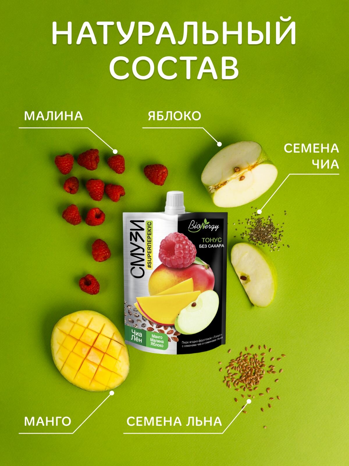 Смузи Ассорти от томского бренда bionergy — это идеальное решение для ценителей здорового питания и высококачественных перекусов. Каждый из смузи в наборе обладает уникальным сочетанием натуральных ингредиентов и предлагает вам широкий выбор смузи без сахара, которые порадуют своим вкусом и полезностью. В каждом смузи bionergy вы найдете лишь очищенные фрукты, такие как яблоко, малина, манго, банан, клубника, киви, облепиха и смородина. Это фруктовое пюре без сахара обогащено витаминами и минералами, которые поддерживают тонус вашего организма. Готовые смузи bionergy в удобной упаковке идеально подходят для активных людей и детей с 3 лет. Смузи без сахара станут отличным перекусом, не содержащим искусственных консервантов и красителей. Кроме того, смузи bionergy обогащены пробиотиками, что способствует нормализации пищеварения и защищает от дисбактериоза. Тщательный отбор сочных плодов и контроль за производственным процессом гарантируют высокое качество каждого напитка. Упаковка формата дой-пак с завинчивающейся крышкой обеспечивает удобство и поддержку всех полезных свойств продукта. В набор входят 10 штук фруктовых и ягодных смузи, которые помогут вам достичь нужного уровня энергии и благополучия. Мы полностью исключили добавление сахара и консервантов, чтобы вы могли наслаждаться исключительно натуральным вкусом. В нашем магазине вы найдете разнообразие наборов смузи ассорти: на 4, 5, 8, 10, 15, 30 или 32 штуки. Попробуйте смузи bionergy сегодня и оцените все преимущества здорового образа жизни. Смузи Ассорти — это не просто десерт, это ваша возможность провести детокс для организма и приобрести больше энергии. Закажите уже сейчас и почувствуйте, как ваш день наполняется радостью и здоровьем!