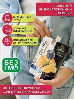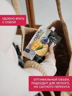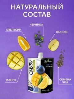 Сбор ягод и фруктов, таких как яблоко, манго, апельсин, черника, создает уникальные вкусы, которые порадуют ваши рецепторы. В составе только свежие ингредиенты, не содержащие консервантов и ГМО. Каждый дой - пак пакет приносит пользу вашему организму благодаря витаминам и питательным веществам, необходимым для поддержания энергии на протяжении всего дня.