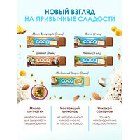 Коробка ассорти содержит вкусы: кокосовый (х9), шоколадный кокос (х7), кокос с ананасом (х7), кокос с манго и маракуйя (х7). Состав каждого вкуса смотрите в карточке товара с этим вкусом. Кокосовый батончик COCO от SNAQ FABRIQ - это не просто правильные сладости, а настоящее полезное ПП удовольствие без вреда для фигуры! Десерт с начинкой из нежной мякоти кокоса, покрытый ароматным натуральным молочным шоколадом без сахара и пальмового масла. Этот диетический продукт можно использовать как здоровый перекус, ведь в нем так много клетчатки и минимум углеводов.