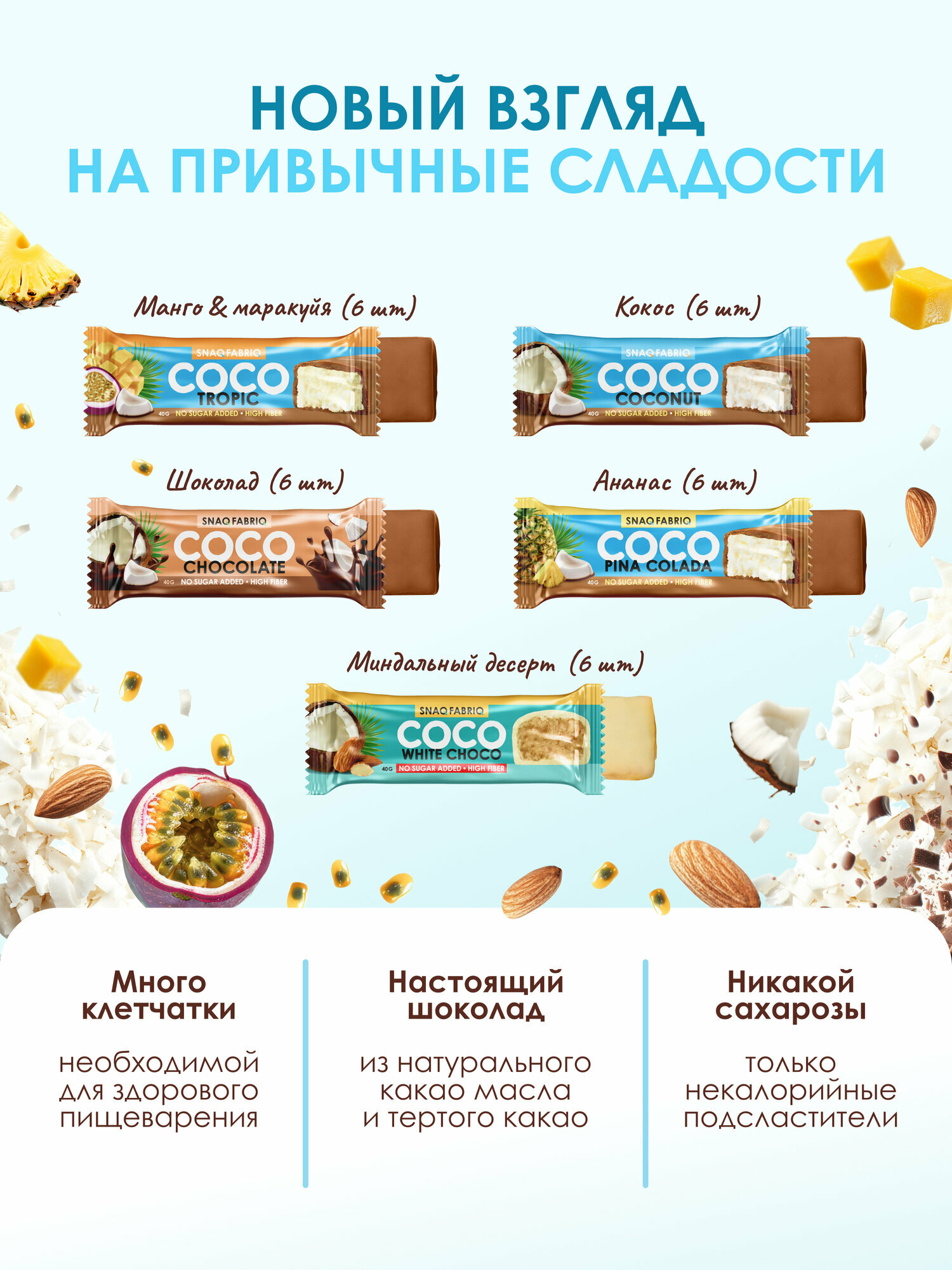 Купить Snaq Fabriq Шоколадные батончики COCO без сахара Ассорти, 30 шт х 40 г с доставкой по всей России. Snaq Fabriq Шоколадные батончики COCO без сахара Ассорти, 30 шт х 40 г: сравнение цен, характеристики, фото, актуальное наличие и цены.