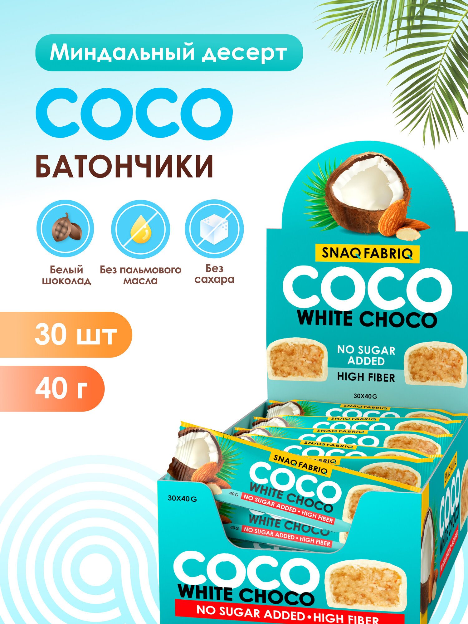 Купить Snaq Fabriq Шоколадные батончики COCO без сахара «Кокос и миндаль», 30шт х 40г с доставкой по всей России.