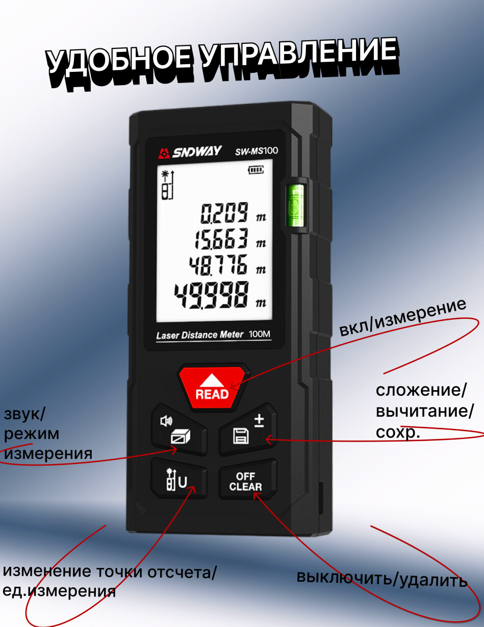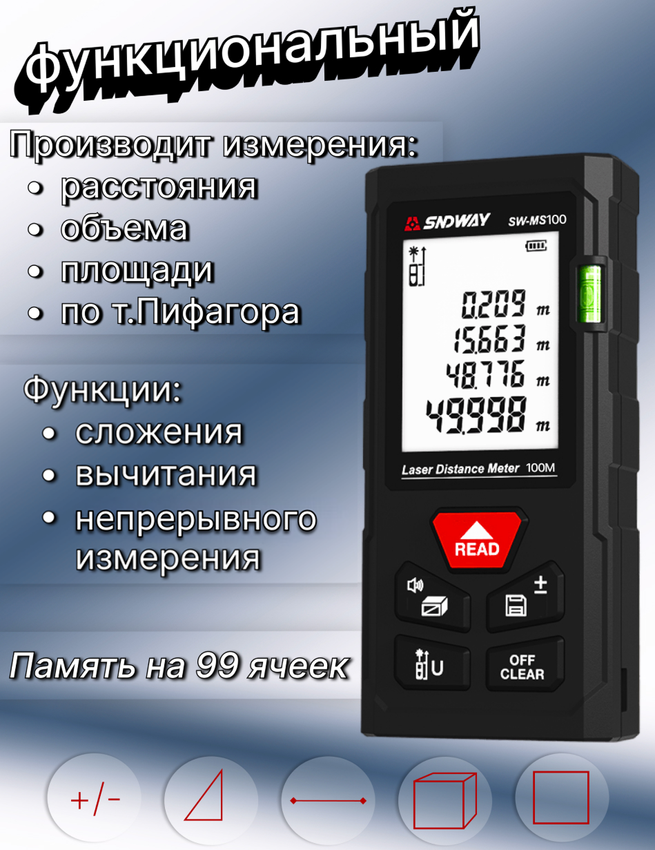 Купить Лазерная рулетка дальномер строительный SNDWAY MS 100 метров с доставкой по всей России. Лазерная рулетка дальномер строительный SNDWAY MS 100 метров: сравнение цен, характеристики, фото, актуальное наличие и цены.
