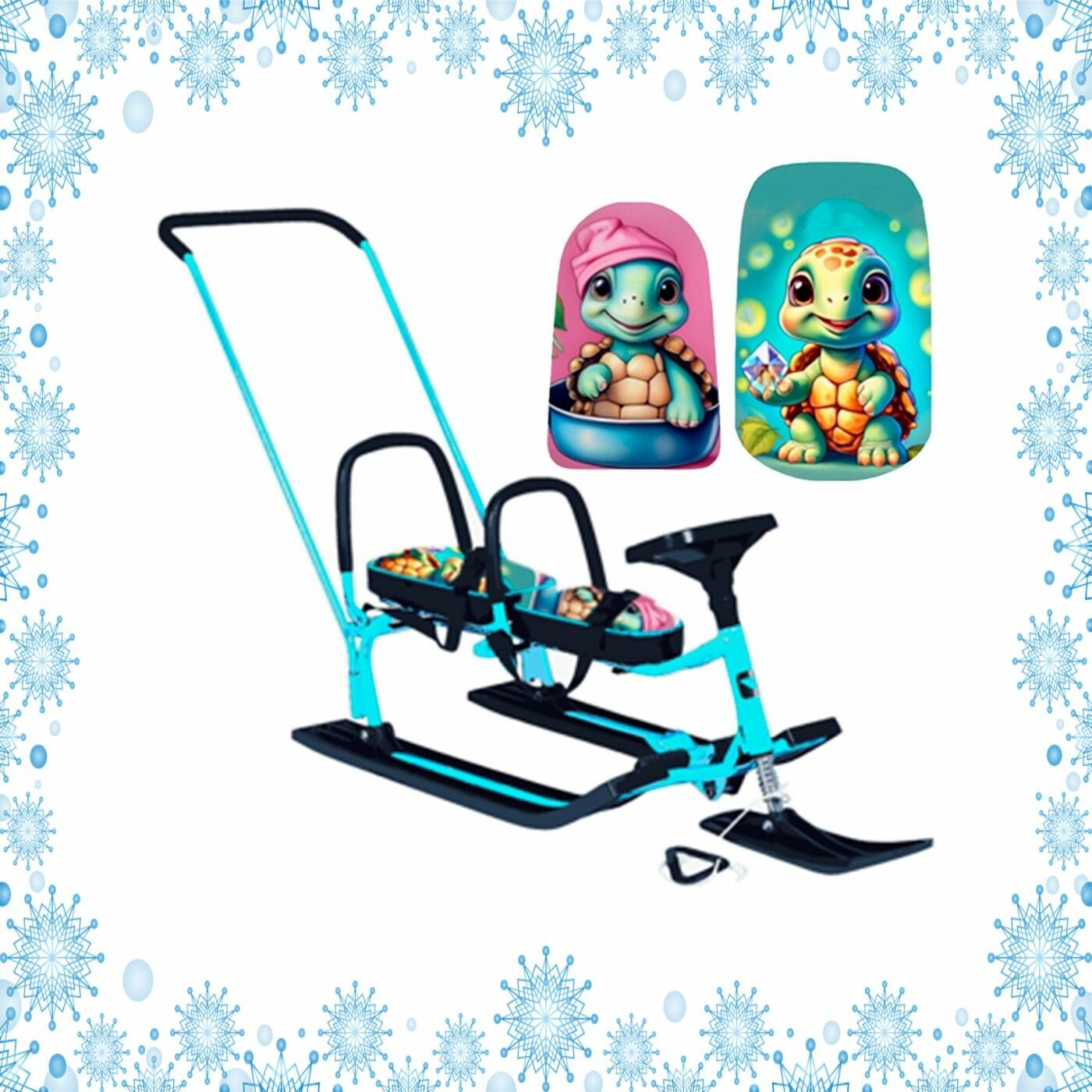 Купить Снегокат 505 высокий SNOWKAT TWINS BABY PUSH для двоих, с 2 скл. спинк. П-обр толкатель Черепашки с доставкой по всей России.