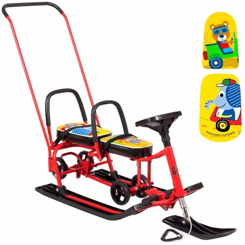 новинка зимы 2022-2023 г. Новые модели снегокатов "TWINS BABY Wheel" . Сделано в России. Вдвоем намного веселее! Снегокат с двумя складными спинками и ручкой-толкателем и колесной базой. Вашим малышам будет очень удобно в долгой поездке опираться на спинку. А если Ваш малыш собрался спуститься с горы, легко и просто он уберет спинки Спинки надежно и прочно фиксируются эксцентриком. Складные спинки с эргономичной конструкцией и боковой поддержкой. Два ремешка для безопасного катания для детей на снегокате. Надежная конструкция рамы из высокопрочной облегченной стали. Лыжи, руль- из морозостойкой пластмассы, выдерживающие температуру до -40с, не подверженной деформации.2 отдельных сиденья выполнены из искусственной кожи-широкие и мягкие. Эргономика-10 баллов Благодаря амортизатору на передней лыже снегокат легко преодолевает все неровности снежных склонов, а стальной ножной тормоз поможет быстро и безопасно остановить снегокат. Эргономичный и легкоуправляемый снегокат отличается стильным дизайном и качеством сборки. Морозостойкий и ударопрочный пластик не подвержен деформации, не треснет на морозе. Колеса – литая резинаВыдвижная съемная колесная база Грузоподъемность - 60 кг Грузоподъемность на П-образную ручка толкатель - 40 кг Грузоподъемность при выдвижении колесной базы 40 кг.