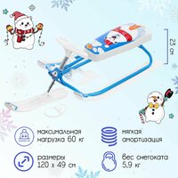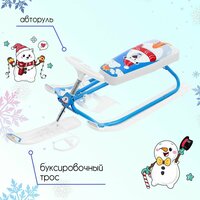 Снегокат предназначен для перевозки детей от 4 лет по плотному снегу или льду, катанию с горок. Имеет сварную конструкцию из стальных труб и пластиковых элементов. Оснащён мягким сиденьем, обтянутым искусственной кожей. Оборудован буксировочным тросом. Тормоз эффективен на обледенелой поверхности.