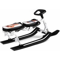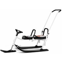 Руль и лыжи выполнены из морозостойкой пластмассы, которая выдерживает температуру до — 40 градусов и не подвержены деформации. Передняя лыжа оснащена амортизатором, который с легкостью преодолеет препятствия и неровности на снежных склонах.