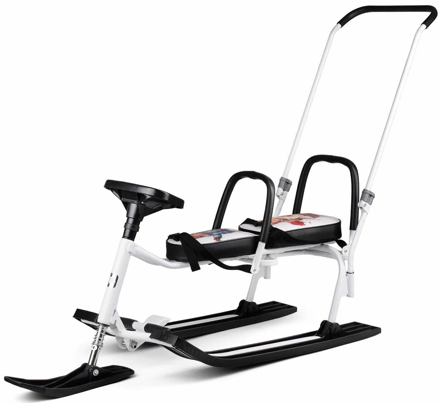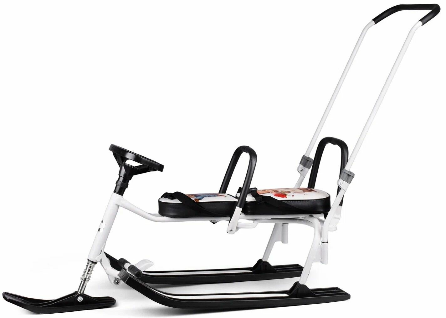 Снегокат для двоих Барс 505 Twins Baby Push с толкателем и картинкой