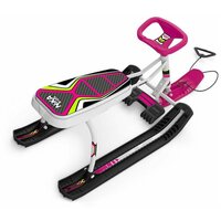 Снегокат предназначен для детей в возрасте от 3 до 12 лет. Имеет сварную конструкцию из стальных труб. Лыжи снегоката изготовлены из морозостойкой пластмассы. Сиденье мягкое, обтянутое искусственной кожей с рисунком. На передней лыже-буксировочный трос-рулетка.
