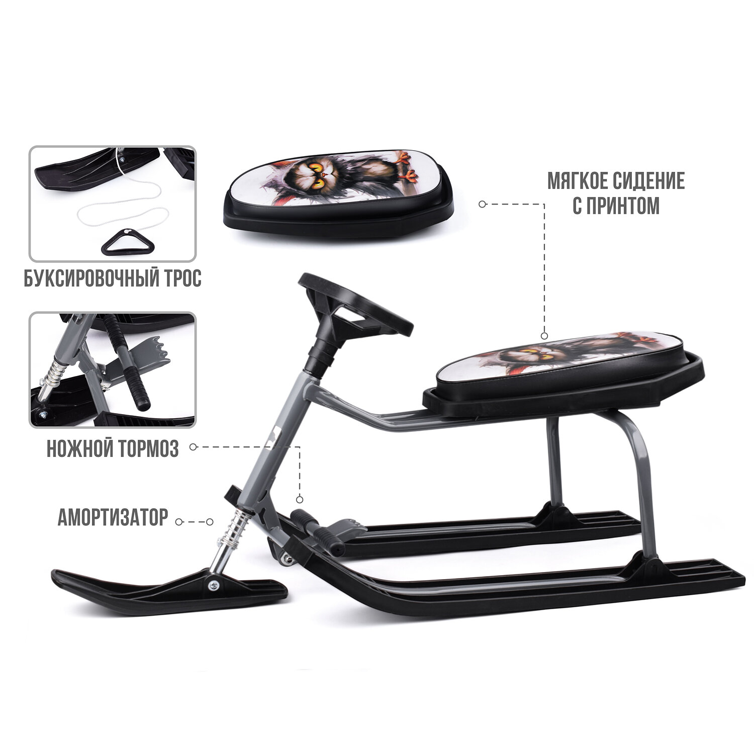 Снегокат 105 Control Animals Smile с Т-образным толкателем, спинкой и управляемой передней лыжей