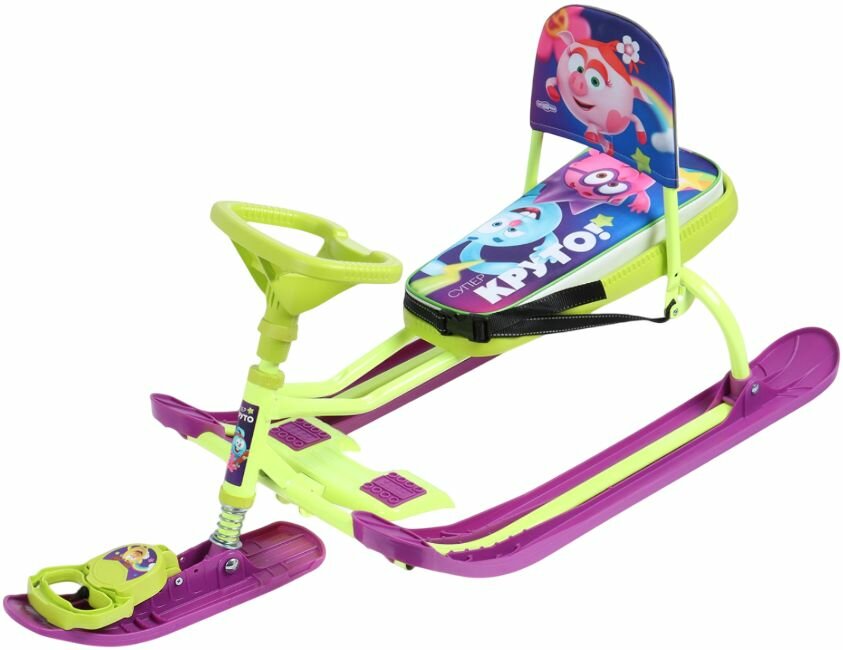 Снегокат детский «Тимка спорт 4-1. Смешарики» со спинкой, мягким сиденьем, авторулем и амортизацией, ремень безопасности, буксировочный трос с автоматической намоткой, 110х49х45 см, 4+, разноцветный: сравнение цен, характеристики, фото, актуальное наличие и цены.