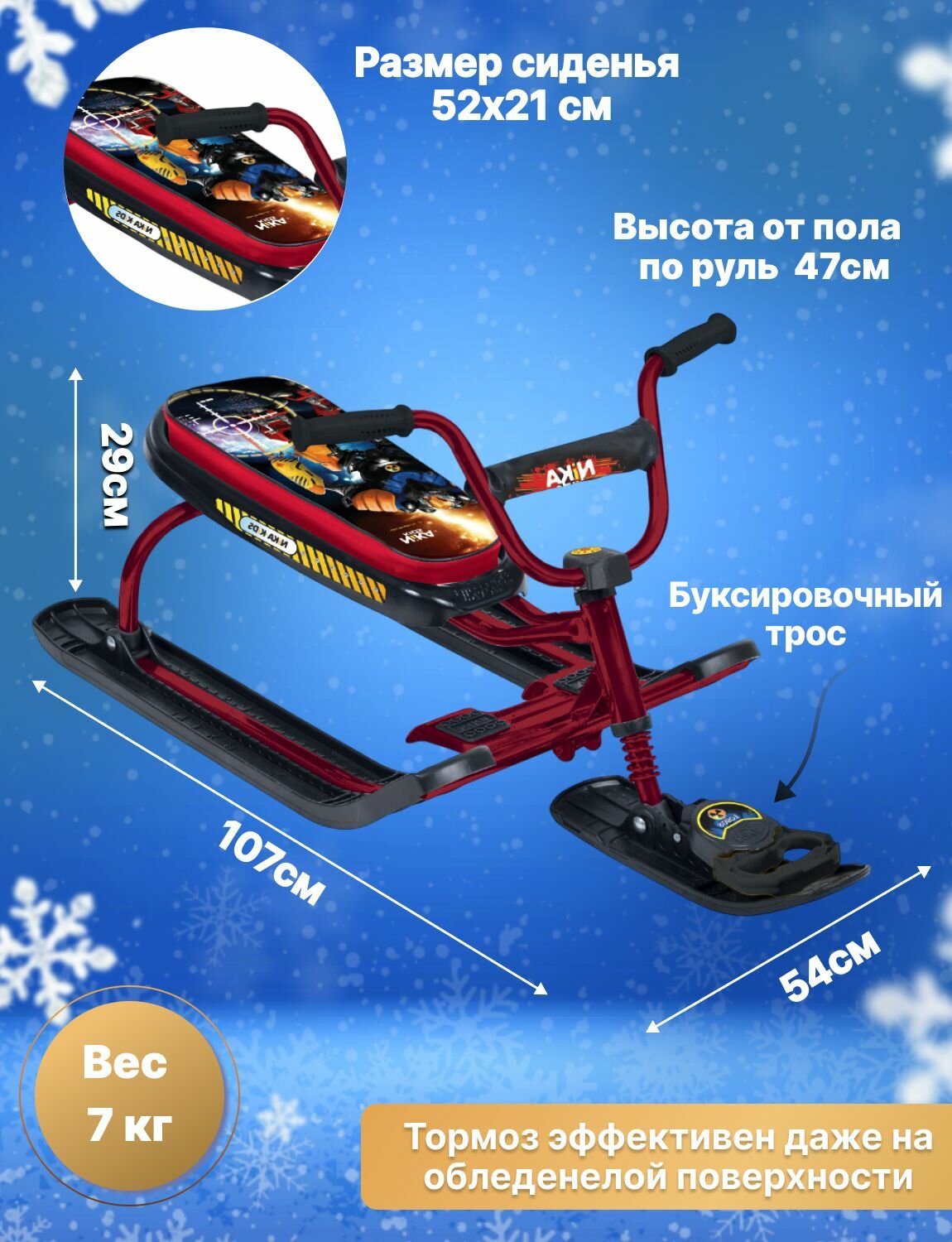 | Особенности | амортизация, буксировочный трос, для взрослых, карвинговые лыжи, колеса, лыжи твин-тип, мягкое сиденье, ограничитель угла поворота, поворотный руль, регулируемое сиденье, регулируемый подъем руля, ремень безопасности, система остановки, складная спинка, со спинкой, тормоз, трос с автоматическим скручиванием |