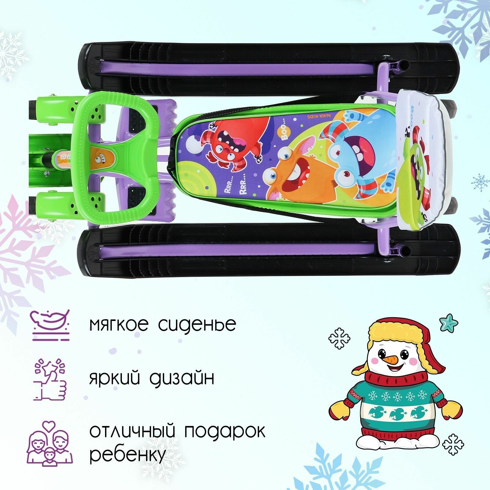 Купить Снегокат Nika «Тимка», с монстриками, выдвижные шасси, для детей от 5 до 14 лет, зеленый с доставкой по всей России.