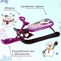 Снегокат предназначен для перевозки детей по плотному снегу или льду, катанию с горок. Имеет сварную конструкцию из стальных труб, пластиковых элементов и мягкое сиденье, обтянутое искусственной кожей с рисунком. Оснащён буксировочным тросом с автоматической намоткой и системой амортизации, которая обеспечивает комфортную поездку по крутым горкам и неровным поверхностям. Усиленный тормоз эффективен на обледенелой поверхности.