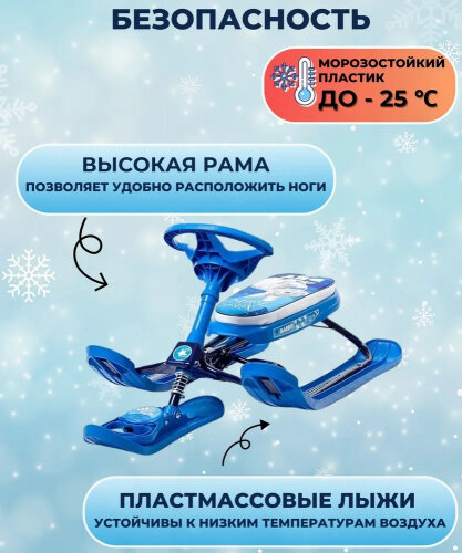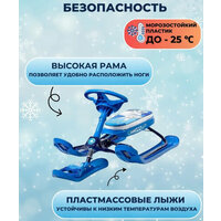 | Комплектация | пластиковые лыжи, металлический каркас, мягкое сидение, буксировочный трос |