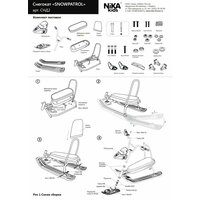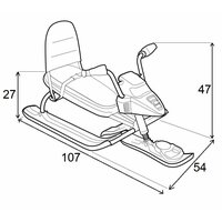 | Комплектация | рама с упором спинки в сборе с тормозом, спинкой и ремнями безопасности 1 комплект, лыжа передняя в сборе с осью руля и рулеткой 1 комплект, лыжа боковая (прав./лев.) 2 шт., руль в сборе с кольцом 1 шт., основание 1 шт., сиденье 1 шт., комплект деталей (крепеж, втулки, амортизаторы), паспорт и руководство по эксплуатации 1 шт., упаковка 1 шт. |