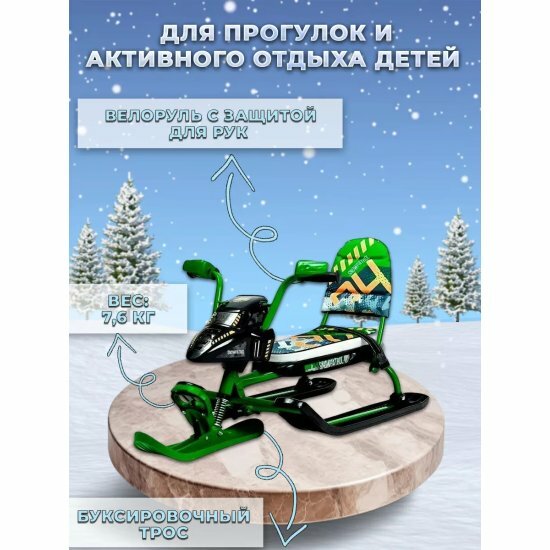 ✅ Для детей, старше 3х лет. Преимущества: велоруль, удлиненное мягкое сиденье, буксировочный трос с автоматической намоткой, усиленный широкий тормоз эффективен даже на обледенелых поверхностях, съемные детали позволяют изменить внешний вид снегоката от сказочного звездолета до гоночного байка, складная спинка, грузоподъемность до 100 кг, комплект ярких наклеек для снегоката в подарок, Габаритные размеры: в разложенном виде (ДхШ) - 1070х540мм, сиденье (ДхШ) - 520х210мм, высота по руль - 470мм, высота по сиденью - 270мм, в сложенном виде (ДхШхВ) - 740х460х255мм, вес - 7,6кг ✅ Снегокат предназначен для перевозки детей по плотному снегу или льду, а также катания с горок. Снегокат имеет прочную сварную конструкцию из стальных труб, пластмассовые лыжи и мягкое сиденье. Рекомендованный возраст - от 4 до 12 лет.✅ Преимущества: удлиненное мягкое сиденье буксировочный трос с автоматической намоткой усиленный тормоз эффективен даже на обледенелых поверхностях грузоподъемность до 100 кг. комплект ярких наклеек для снегоката в подарок!✅ снегокат, снегокат детский, снегокат для детей, снегокат с ручкой, снегокат для девочек, снегокат для мальчика, снегокат ника, снегокат детский со спинкой, снегокат детский с ручкой, детский снегокат, снегокат со спинкой, снегокат санки, снегокат на колесах, снегокат nika, снегокат для ребенка, снегокат в подарок.