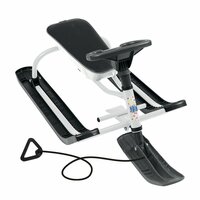 Базовая модель снегоката "Тимка спорт" для прогулок и активного отдыха детей от 7 до 12 лет. Снегокат имеет стальную раму из сварных труб, с пластмассовыми лыжами и мягким сиденьем.